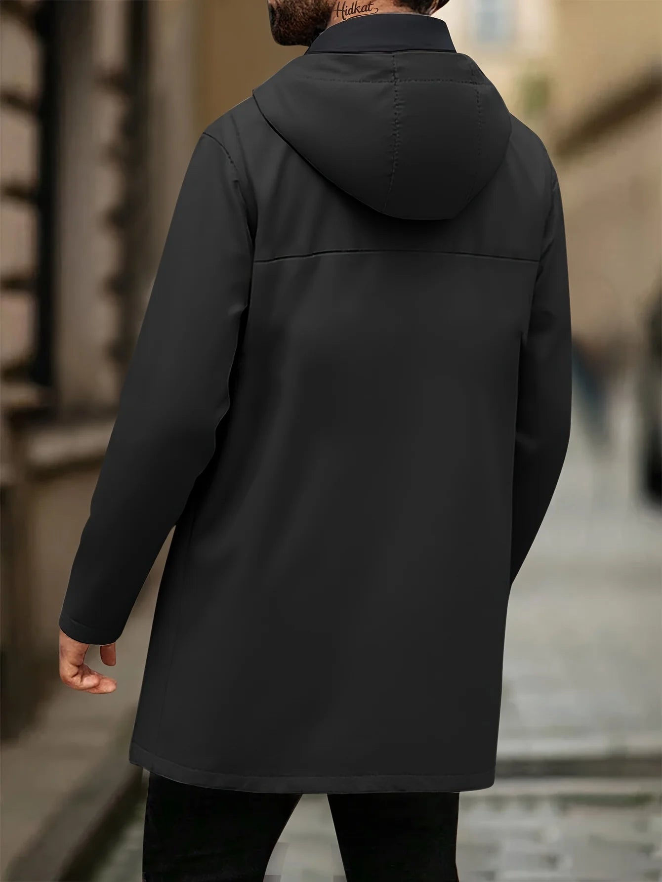 A casual men's jacket designed for autumn and winter, offering comfort, warmth, and functionality with a modern hooded style.