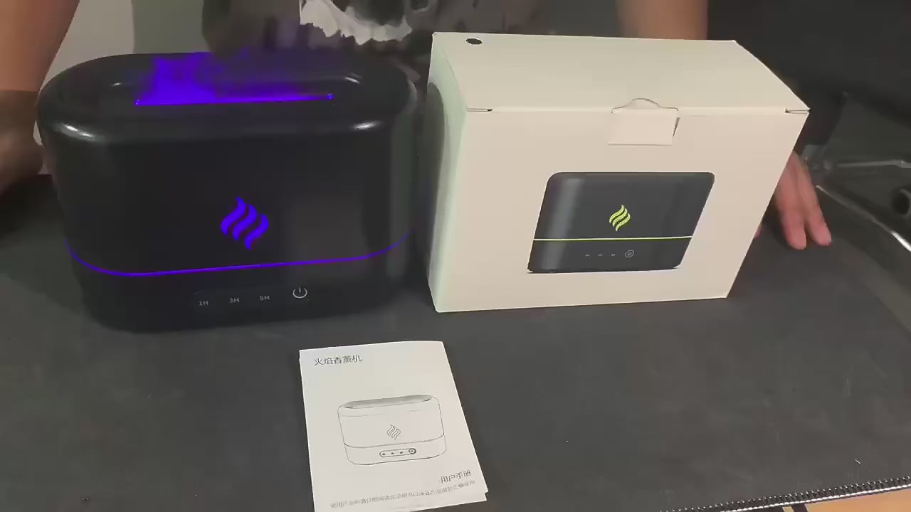 Simulated Flame Aroma Diffuser & Humidifier with 7-Color LED, Timer, Silent Operation, and Air Purification for Essential Oils