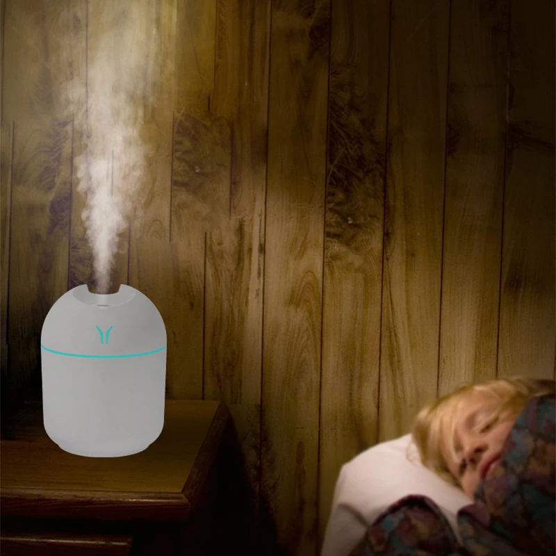 250ML USB Ultrasonic Air Humidifier & Essential Oil Diffuser – Quiet Mist Maker with LED Mood Light for Home & Car Use