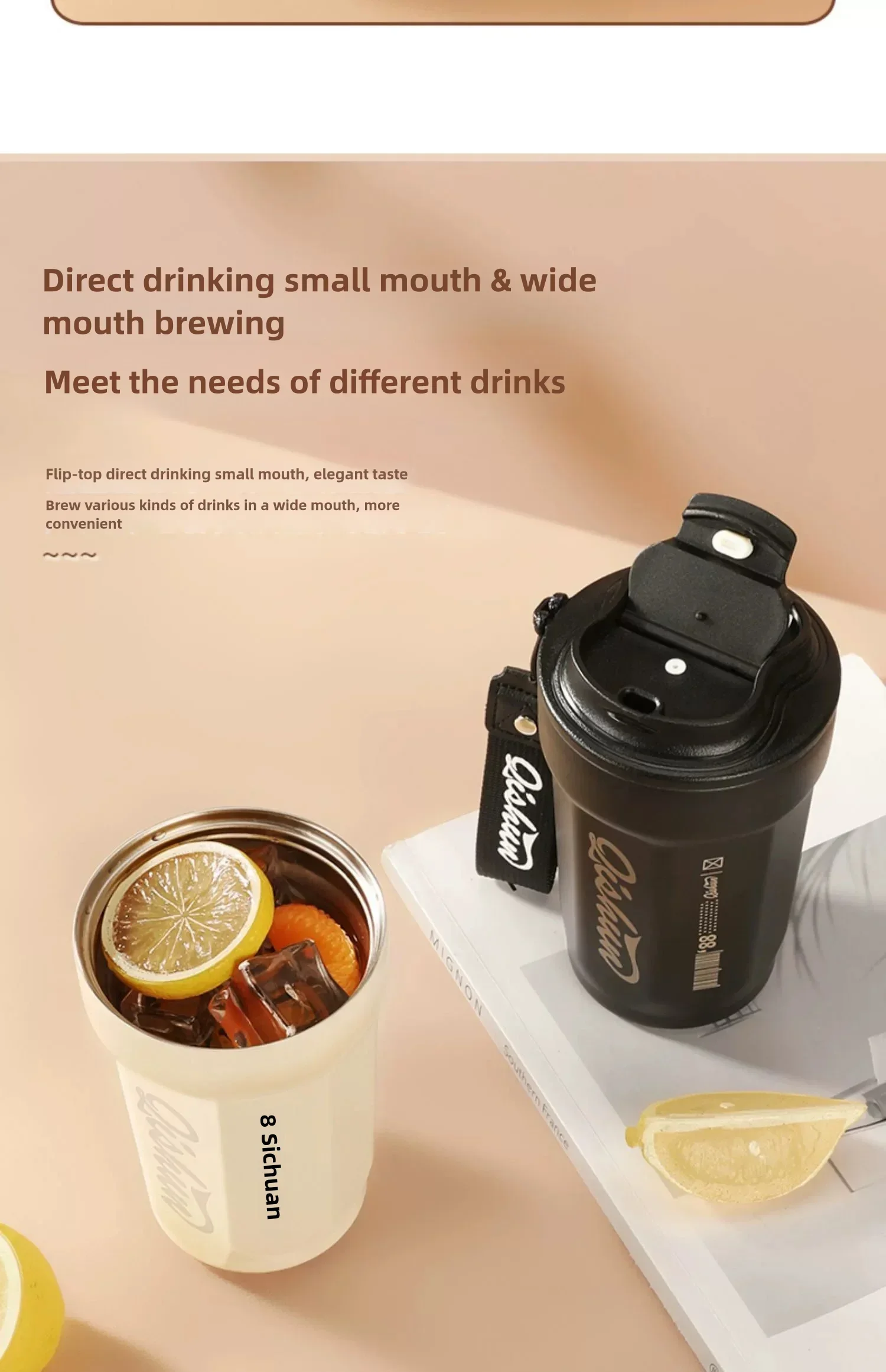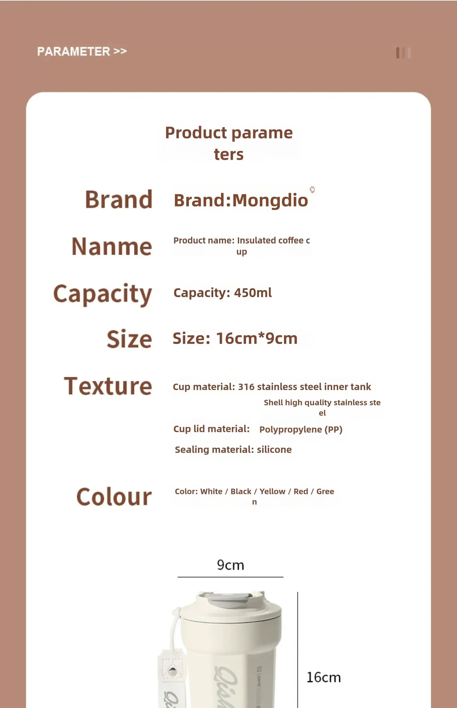 Enjoy your favorite drinks on the go with this 480ml insulated travel mug. Made from durable metal, it features a double-wall design to maintain the temperature of hot or cold beverages. Ideal for coffee, tea, or iced drinks, it's portable, stylish, and perfect for everyday use at home, in the office, or while commuting.