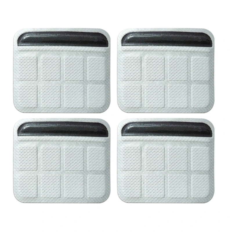 This set includes 4 universal helmet chin pads made from soft sponge material, designed as replacement padding for cycling, bike, motorcycle, and racing helmets. Each pad measures approximately 7.6 x 6.2 cm (2.99 x 2.44 inches).