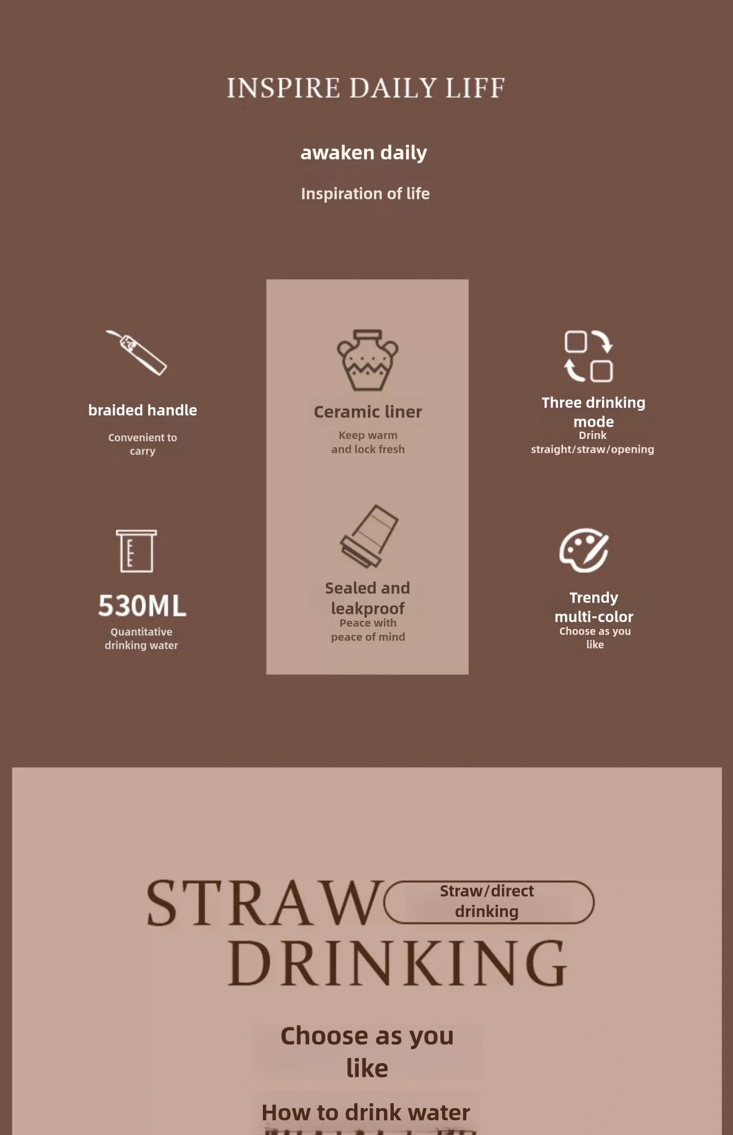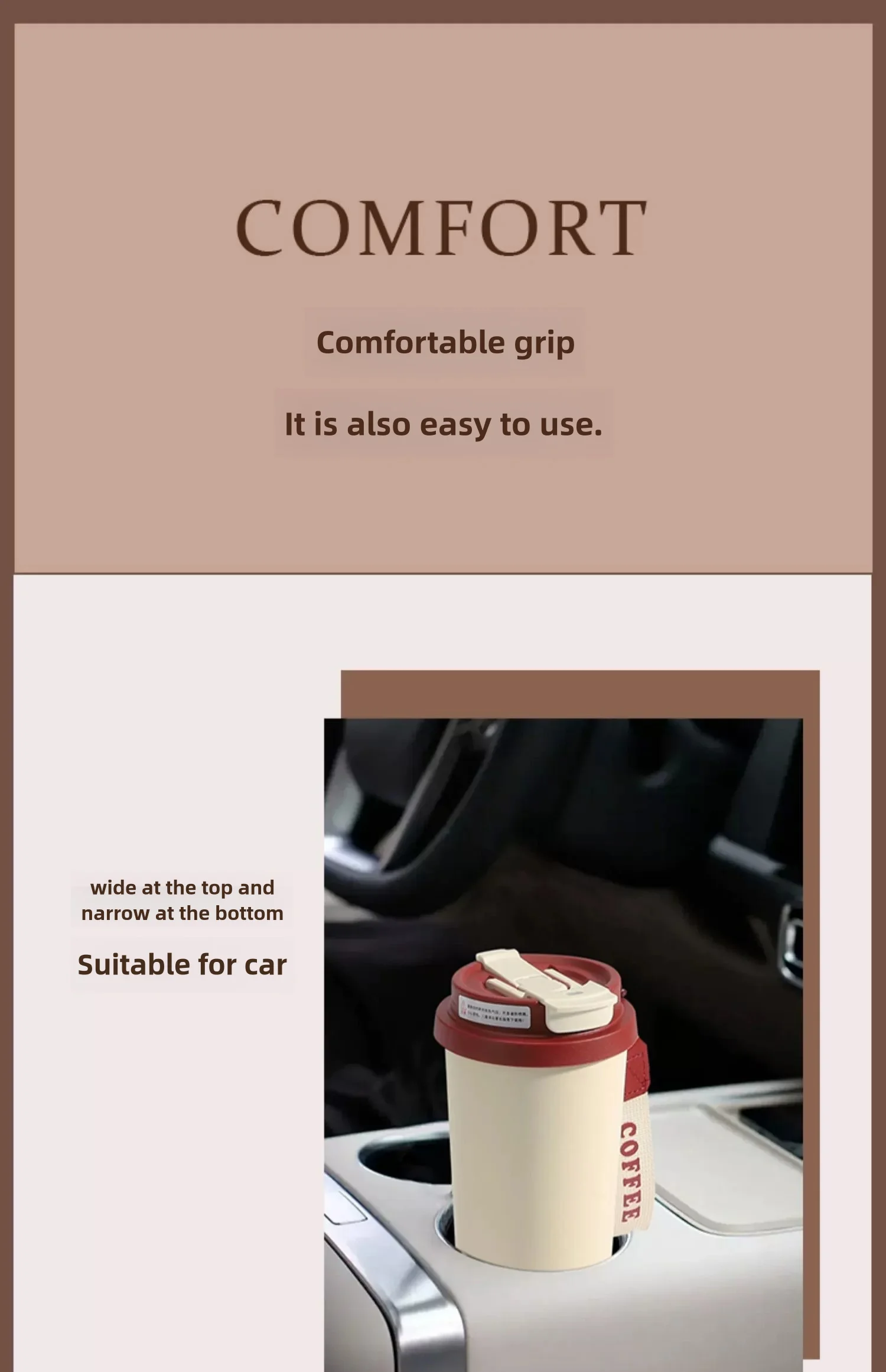 This 530ml travel coffee mug combines durability with style, featuring a stainless steel exterior and a ceramic liner for pure coffee taste. Designed with a secure seal lid to prevent spills, it’s ideal for commuting, travel, or office use. Reusable and easy to clean, it keeps your drink fresh whether hot or cold.