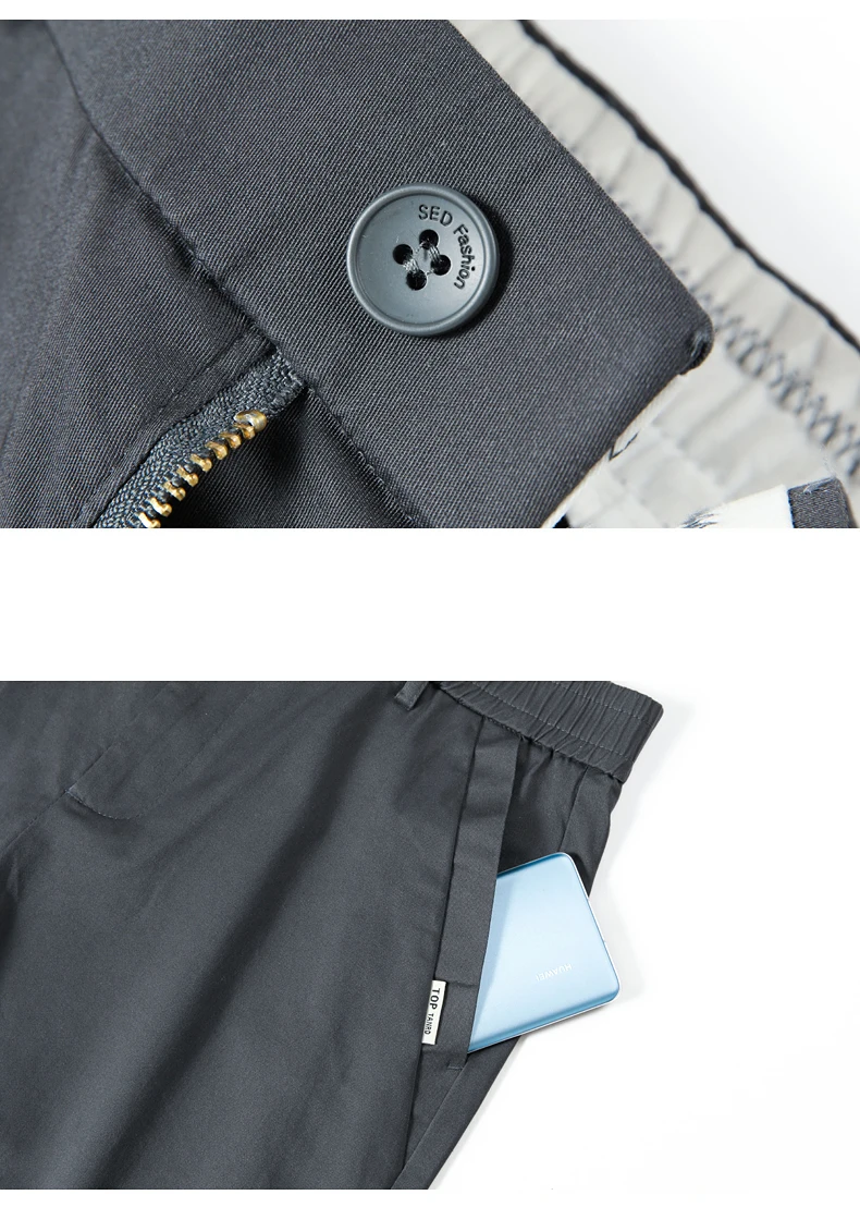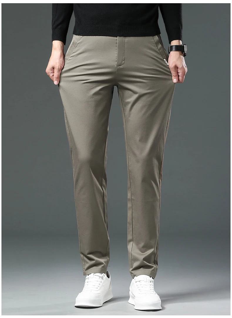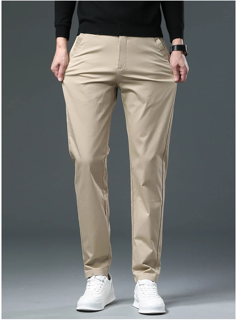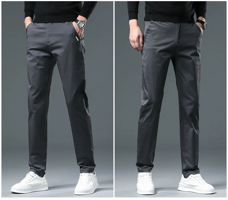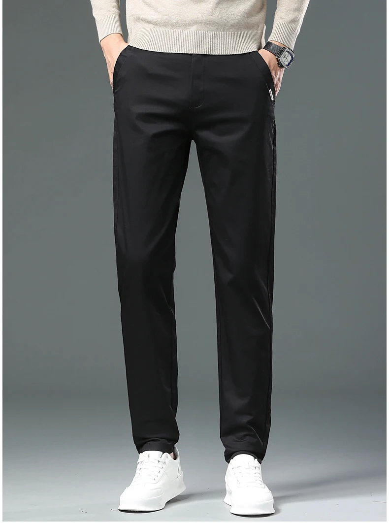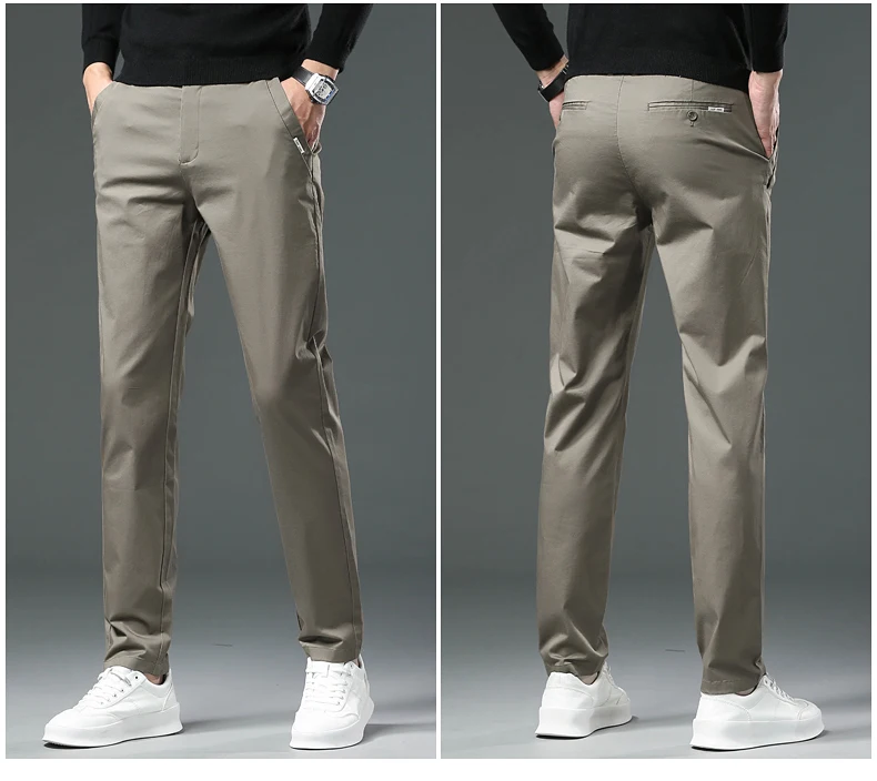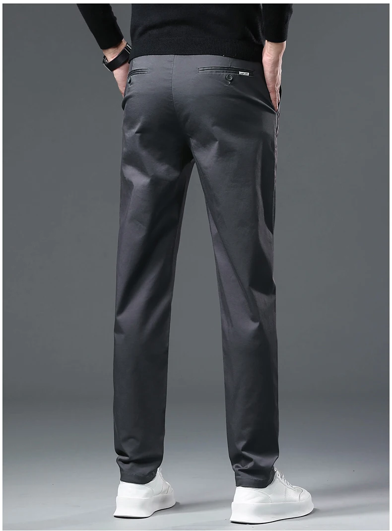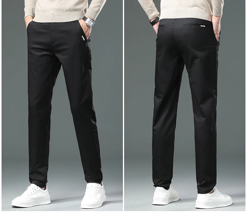 These men's full-length trousers are crafted from a premium blend of 98% cotton and 2% spandex, offering a balance of softness, breathability, and slight stretch for comfort throughout daily wear. Designed with a regular fit and straight-leg cut, they provide a smart casual look suitable for both autumn and winter.