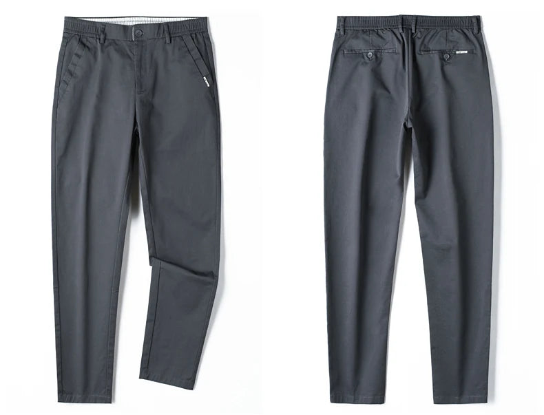 Men’s Classic Straight-Leg Cotton Trousers – 98% Cotton, Breathable Business Casual Pants with Elastic Comfort – Ideal for Spring & Summer