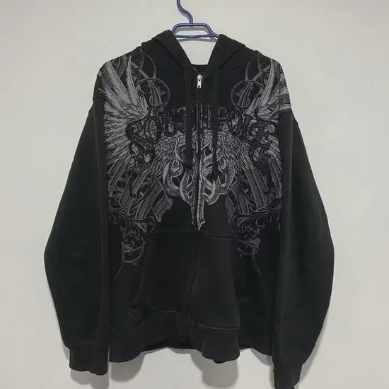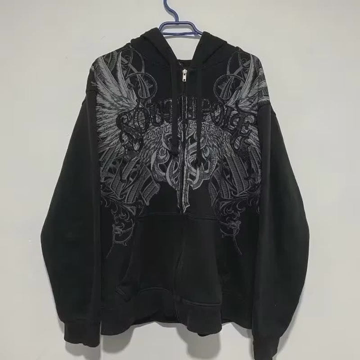 American Y2K-Inspired Oversized Padded Hoodie – Women's Streetwear Hip Hop Zip-Up Sweatshirt, Casual Punk Couple Style Outerwear