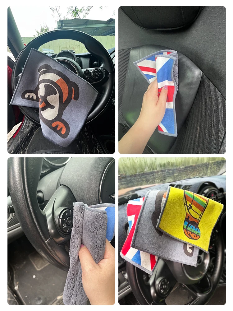 This multifunctional suede cleaning towel is designed for both car detailing and household cleaning. Made from soft, high-quality suede material, it effectively wipes away dust, dirt, and moisture without scratching surfaces. Its compact size (27×19.5 cm) makes it easy to handle, while the ultra-absorbent and reusable design ensures long-term use. Perfect for cleaning car interiors, dashboards, windows, and also suitable for household surfaces. Choose from stylish prints like Union Jack, Bulldog, and more to add a touch of personality to your cleaning routine.