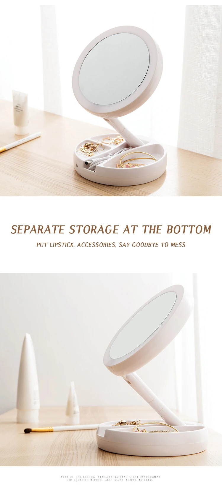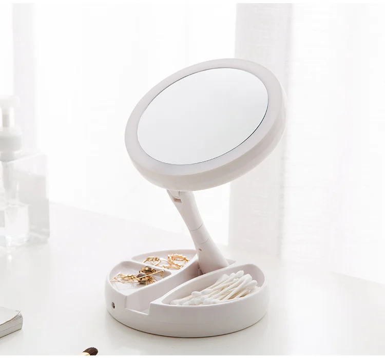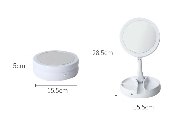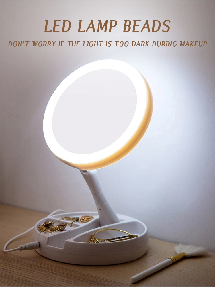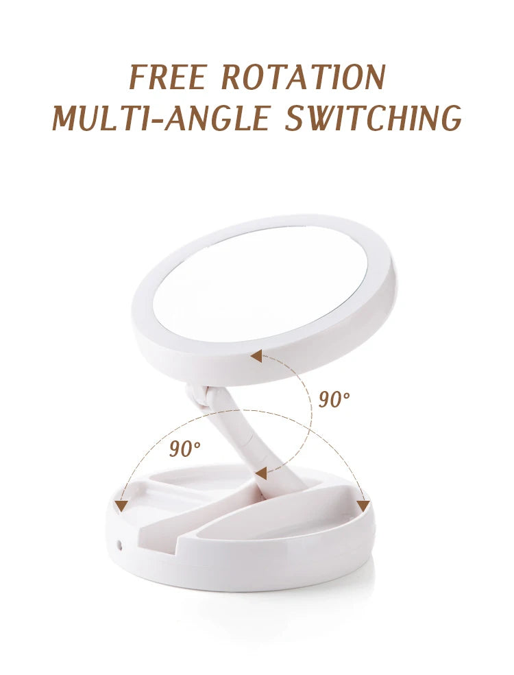 Dual-Powered LED Makeup Mirror – Portable Double-Sided Mirror with 10X Magnification, Battery/USB Operated