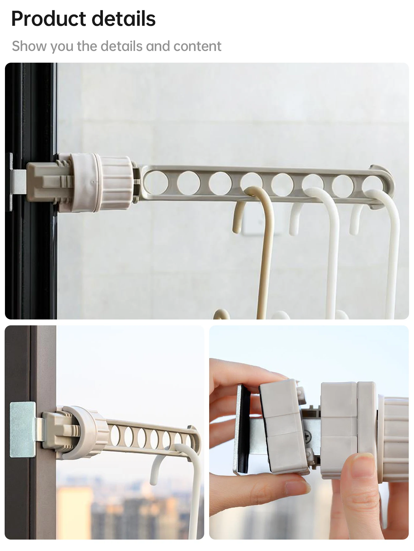 Wall-Mounted Clothes Drying Rack for Balcony & Bathroom – 8-Hole Space-Saving Indoor Laundry Hanger