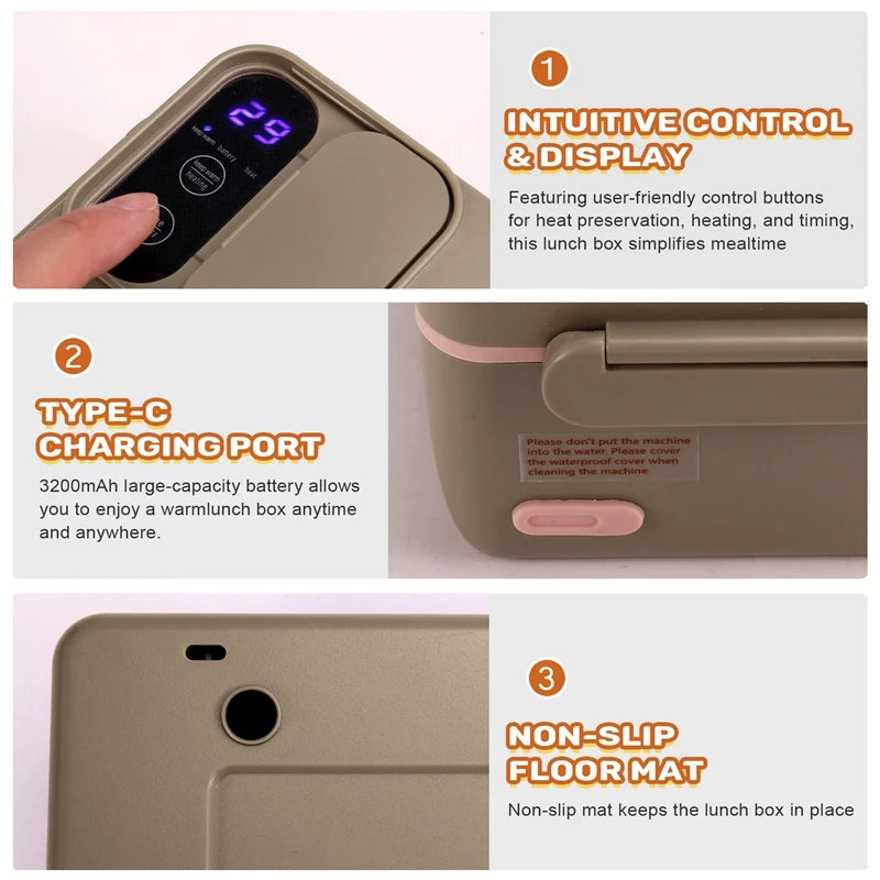 - Rechargeable & Portable: Powered by a high-capacity 3200mAh battery, it charges via Type-C and allows you to heat meals wherever you are.