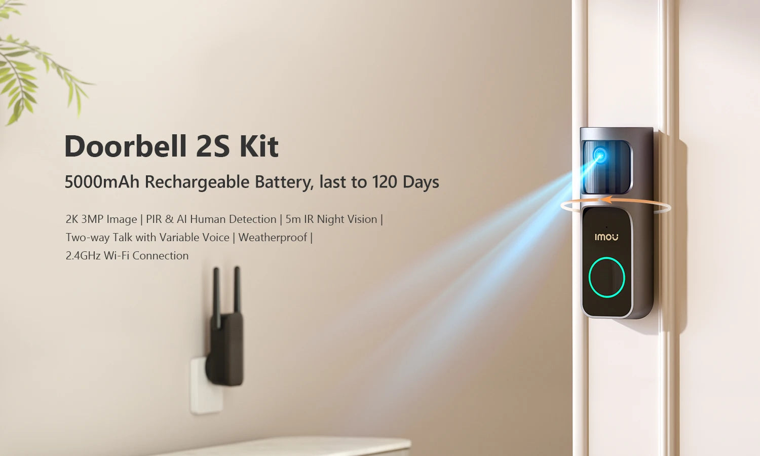 IMOU Video Doorbell 2S with Chime, Rechargeable 5000mAh Battery, Human Motion Detection, Two-Way Audio, Waterproof, Fully Wireless