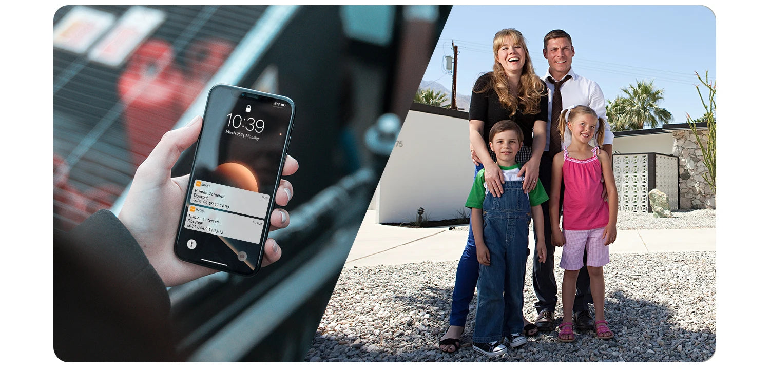 PIR Motion + AI Human Detection: Fast and accurate alerts with just 0.3s detection time, avoiding false triggers.