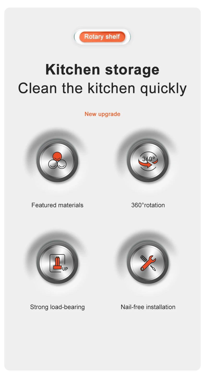 The no-drill installation makes it quick and easy to set up without damaging your walls. Its rotatable design allows for effortless access to condiments, bottles, or toiletries, keeping your space organized and clutter-free. Ideal for small areas where space-saving is essential.