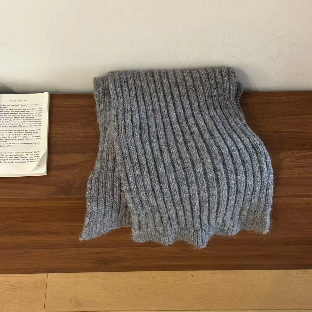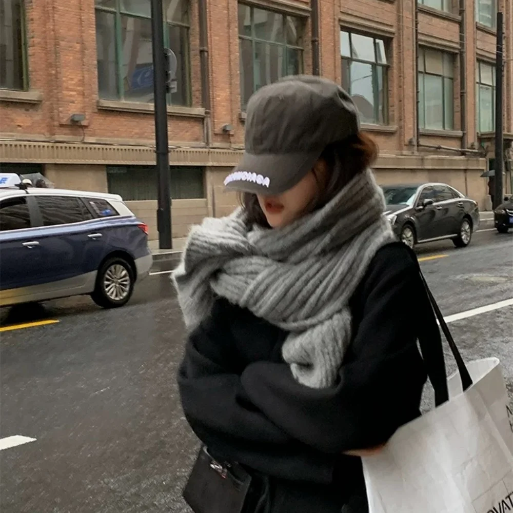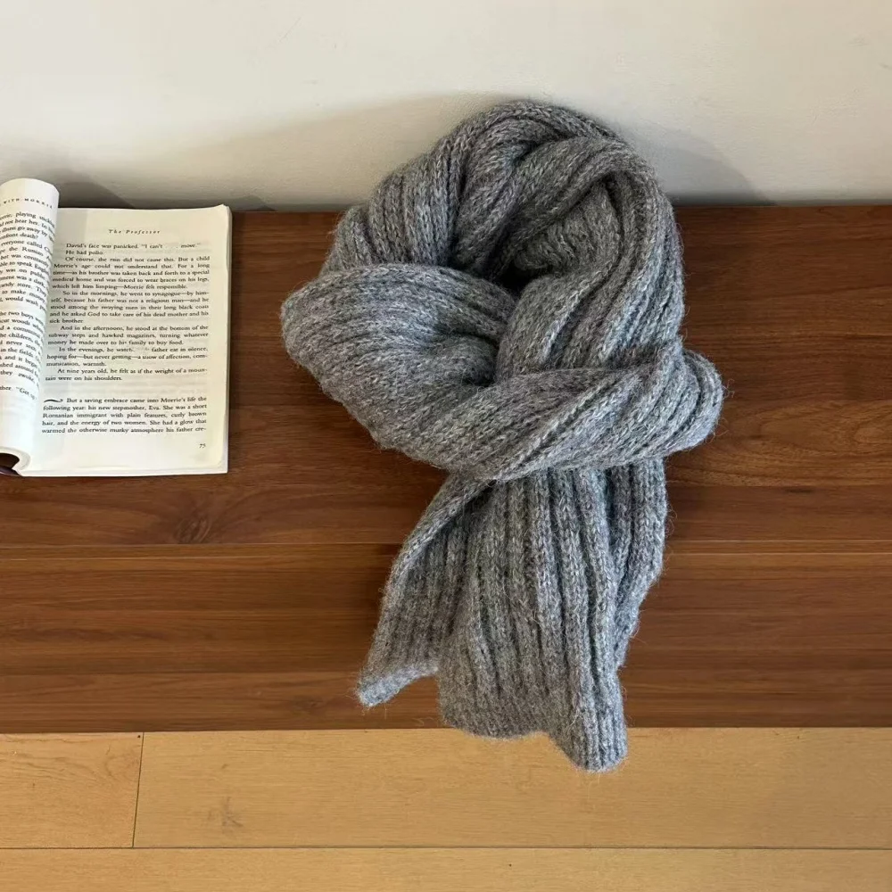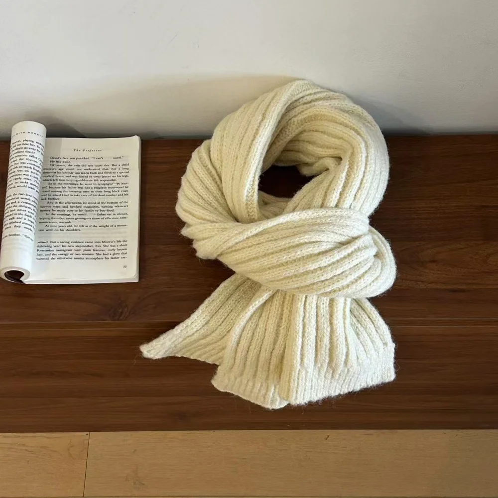 High-End Korean Style Thick Knit Scarf for Women – Warm Woolen Solid Color Winter & Autumn Wrap