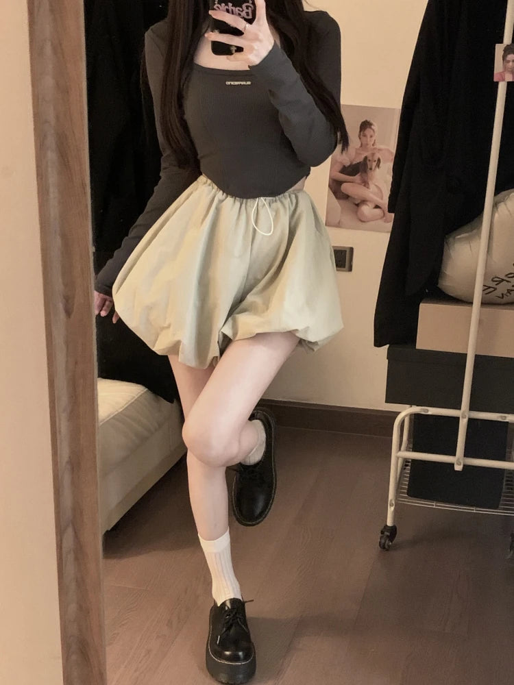 Women's High-Waist Lantern Shorts – Casual Summer Streetwear with Pockets, Relaxed Fit for Students, Youth, and Everyday Wear