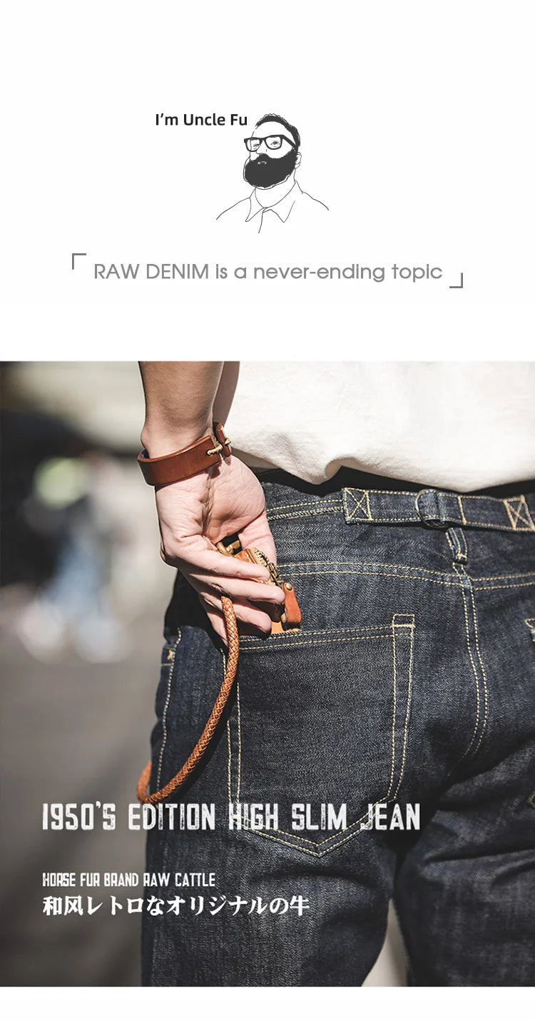 Maden 14oz Men's Vintage Selvedge Denim Jeans – Straight Fit with Horsehide Patch & Paris Buckle, Autumn/Winter Style