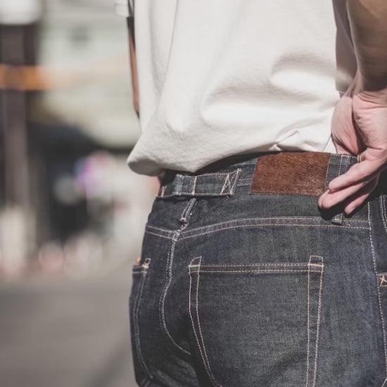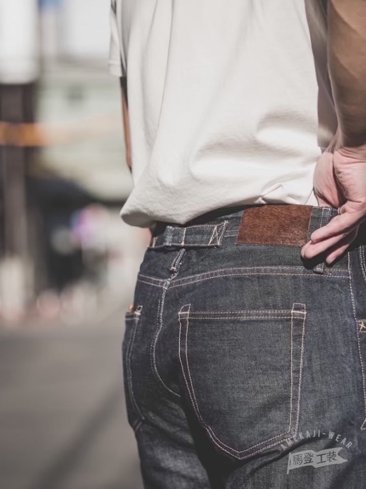 Crafted from 14oz 100% cotton raw selvedge denim, these Maden jeans offer a vintage straight-leg fit with premium touches like a horsehide leather patch and Paris-style buckle. Ideal for cooler seasons, the midweight fabric delivers structure and long-term durability. Perfect for casual, retro, or amekaji styles.