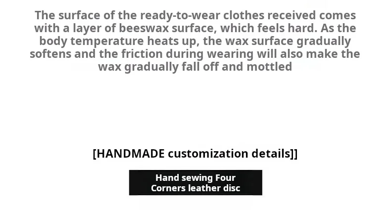 - Material (Shell): Cotton (waxed/treated)