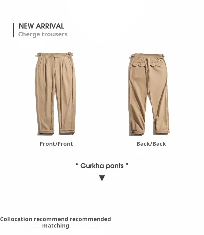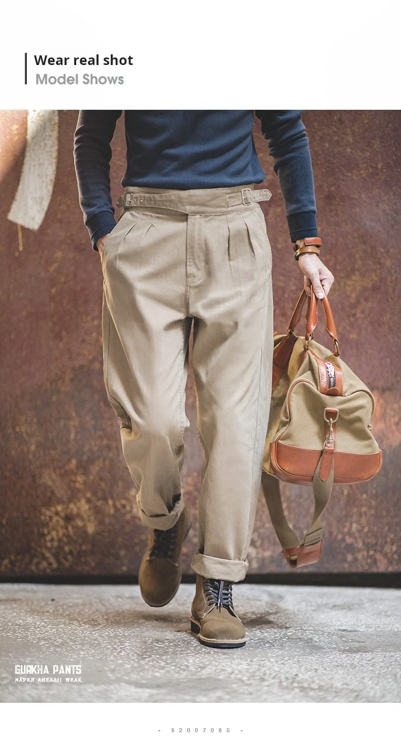 Classic Vintage Khaki Gurkha Pants for Men – Adjustable High Waist Casual Cargo Trousers for Spring and Fall