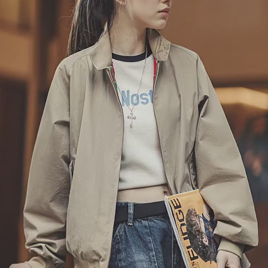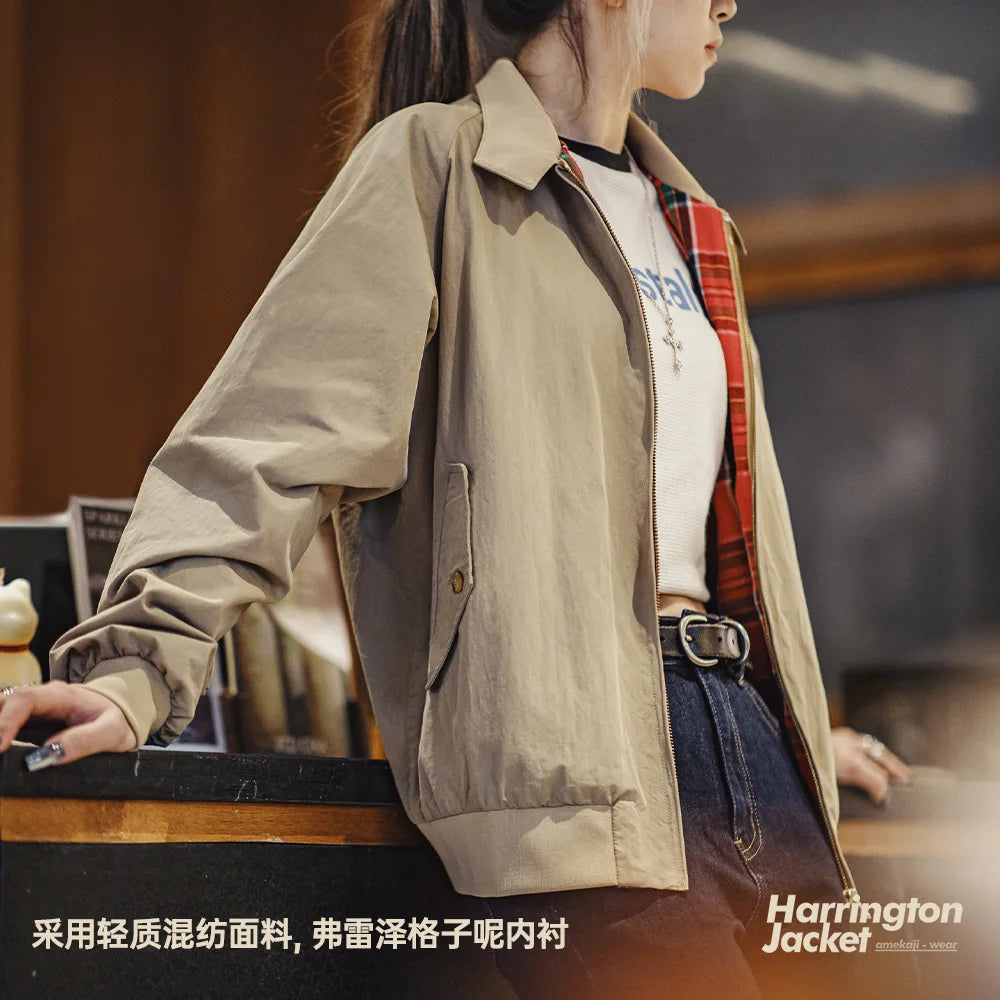 Maden Vintage Stand-Up Collar Jacket – Workwear Baseball Style Coat for Women & Unisex, Spring/Autumn