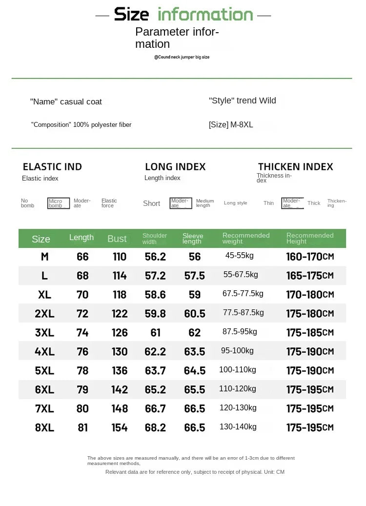 This men's casual outerwear jacket is designed for daily use during spring and autumn seasons. Made from durable polyester with a polyester lining, it features a zipper closure and a regular fit with a standard thickness for comfortable wear. The jacket includes a hood with a ribbed cuff style and a regular sleeve design. It has a solid pattern and no detachable parts. Available in sizes ranging from M to 8XL, the clothing length varies from 110 cm (43.31 inches) up to 154 cm (60.63 inches). The jacket offers full opening functionality and originates from Mainland China.