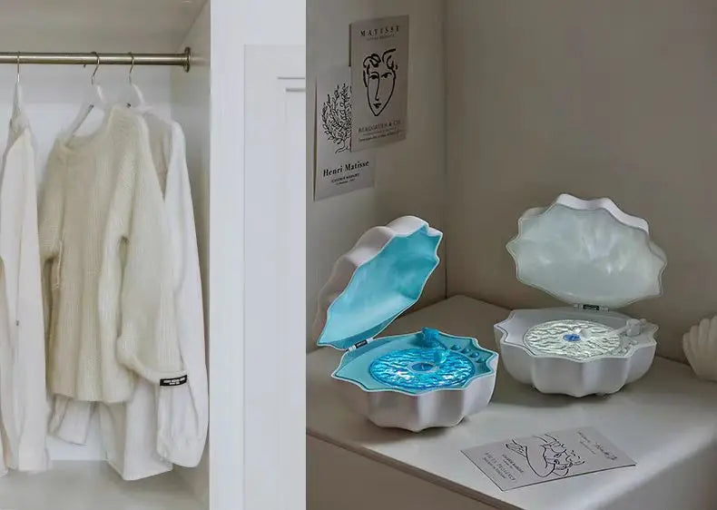 1. Inspired by the sea, the unique shell-shaped design with a jelly-like translucent texture combines both light and sound, creating a dreamy, romantic vibe.