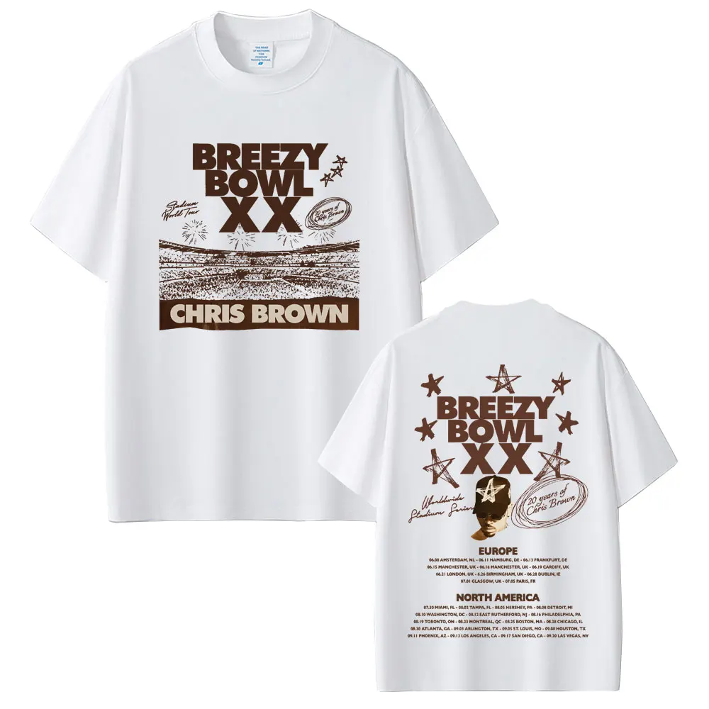 Chris Brown Breezy Bowl XX 2025 Tour Vintage Cotton T-Shirt for Men & Women – Casual Summer Hip Hop Oversized Tee