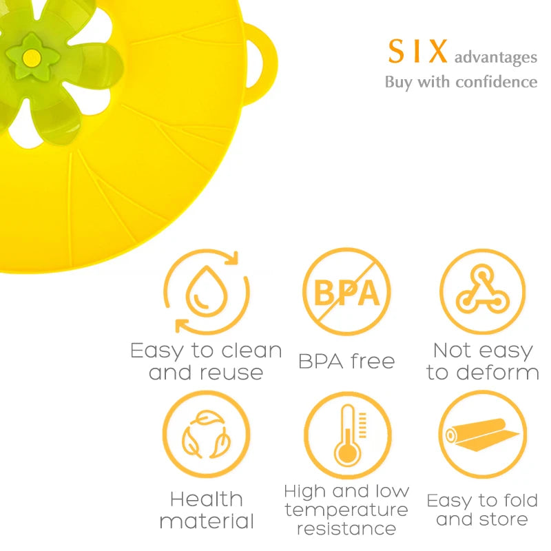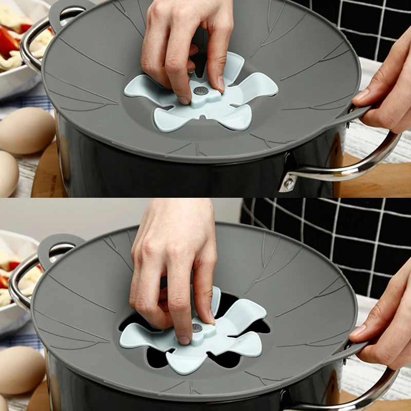 Silicone Boil-Over Spill Guard, Food-Grade Kitchen Stopper Lid Cover for Pots and Pans. This silicone pot cover acts as a spill stopper lid.