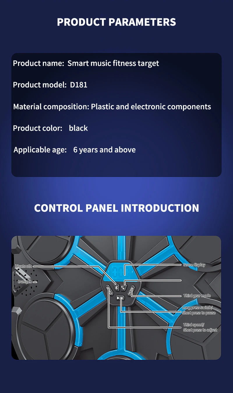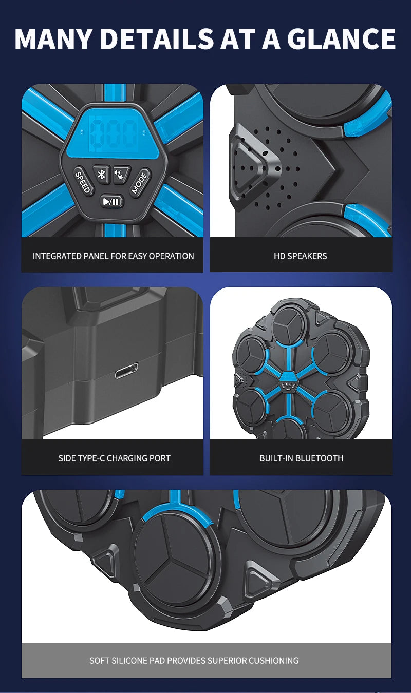 With options for Bluetooth or non-Bluetooth models, the smart boxing machine plays rhythmic music and light prompts, guiding users to strike specific target zones in sync with the beat. Whether you're training for martial arts, relieving stress, or just having fun, this device is perfect for home gyms, playrooms, or fitness corners.
