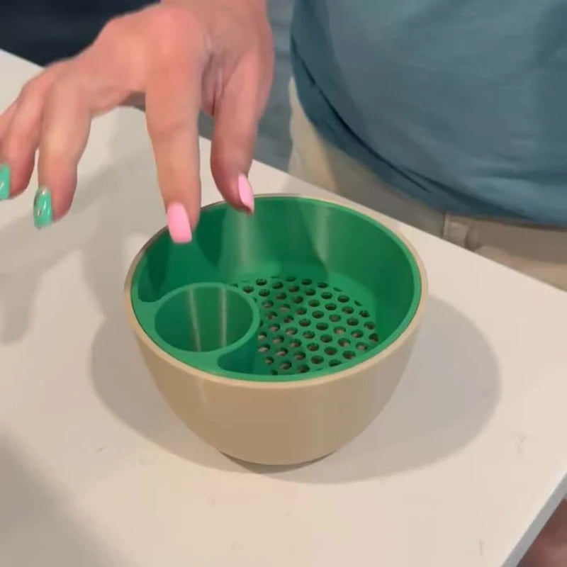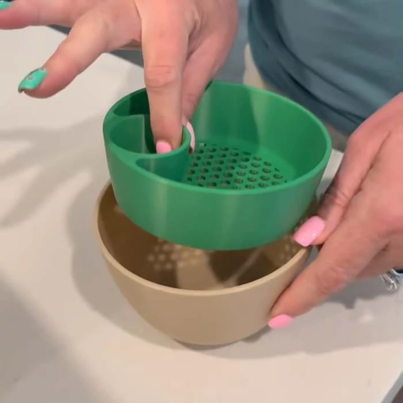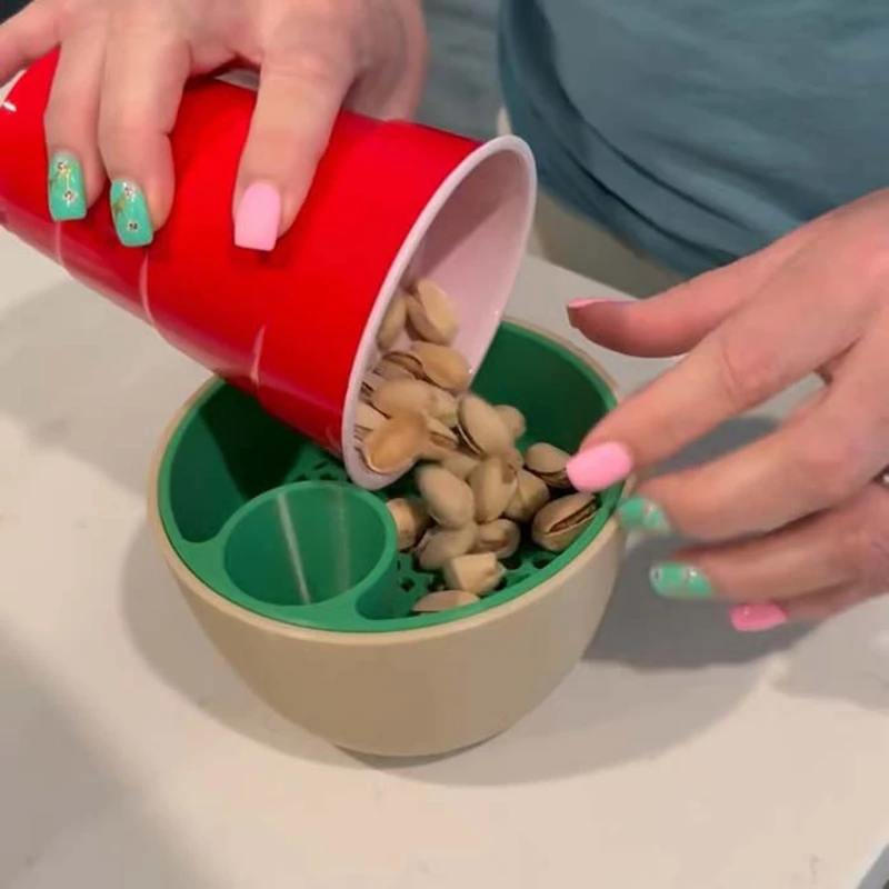 This dual-layer pistachio bowl offers a smart, mess-free snacking solution. The top compartment is designed to hold snacks, while the lower chamber collects shells or waste, easily accessible through a built-in opening. The detachable upper bowl ensures effortless cleanup and disposal. With its modern, compact style, it fits seamlessly into any space—be it a coffee table, office desk, or kitchen. Ideal for pistachios, sunflower seeds, nuts, and similar snacks.