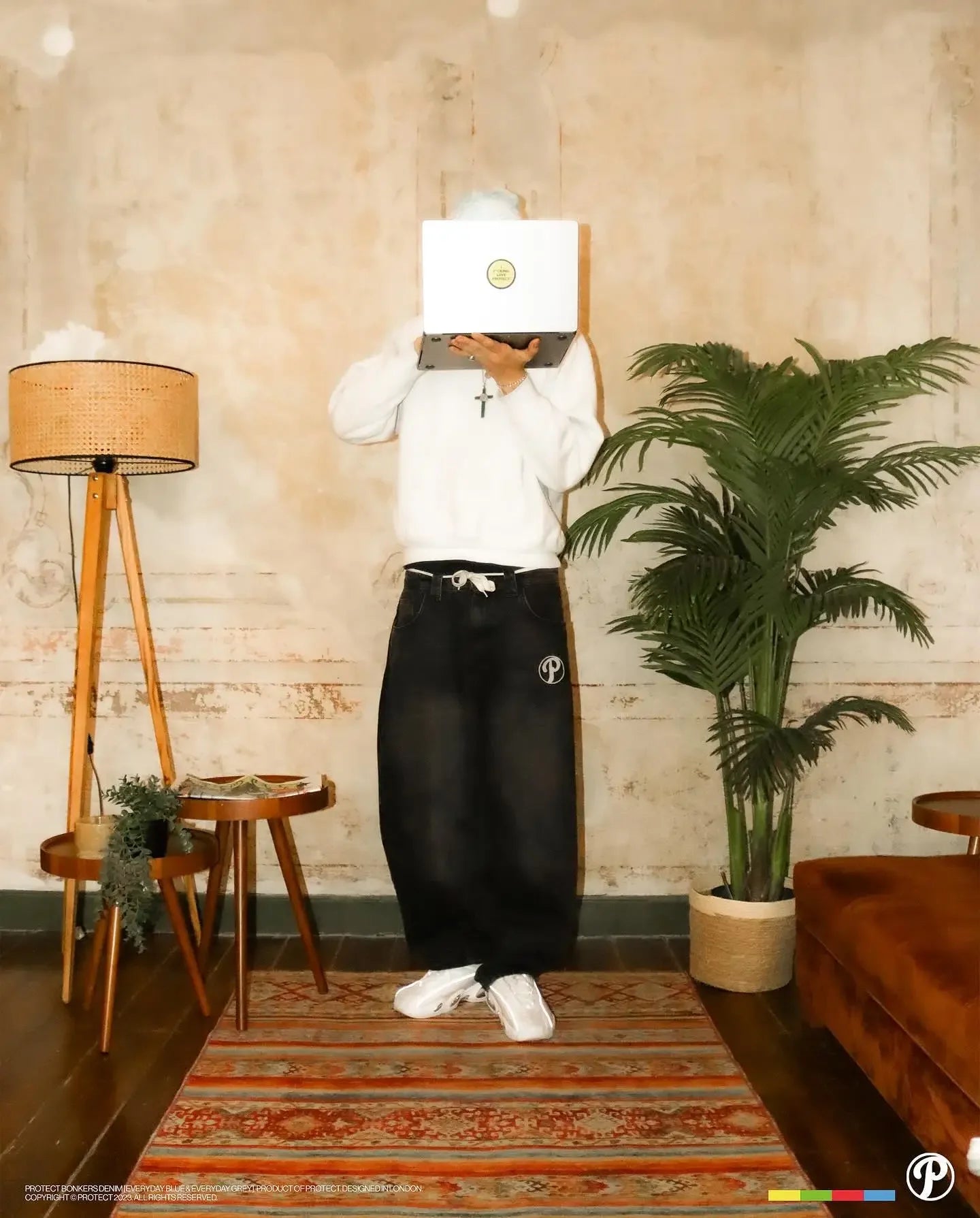 Streetwear PROTECT Embroidered Jeans for Men – Y2K Vintage Blue Baggy, High Waist, Wide Leg Harajuku Hip Hop Pants