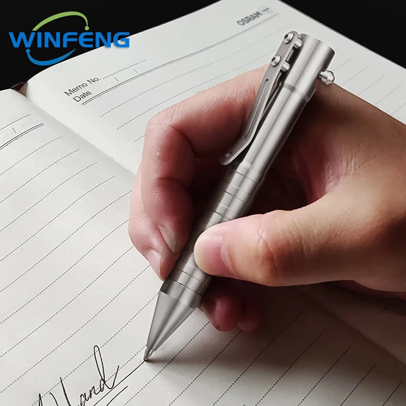 Titanium Tactical Ballpoint Pen – Bolt Action Business Pen with Glass Breaker, Self-Defense Survival EDC Tool