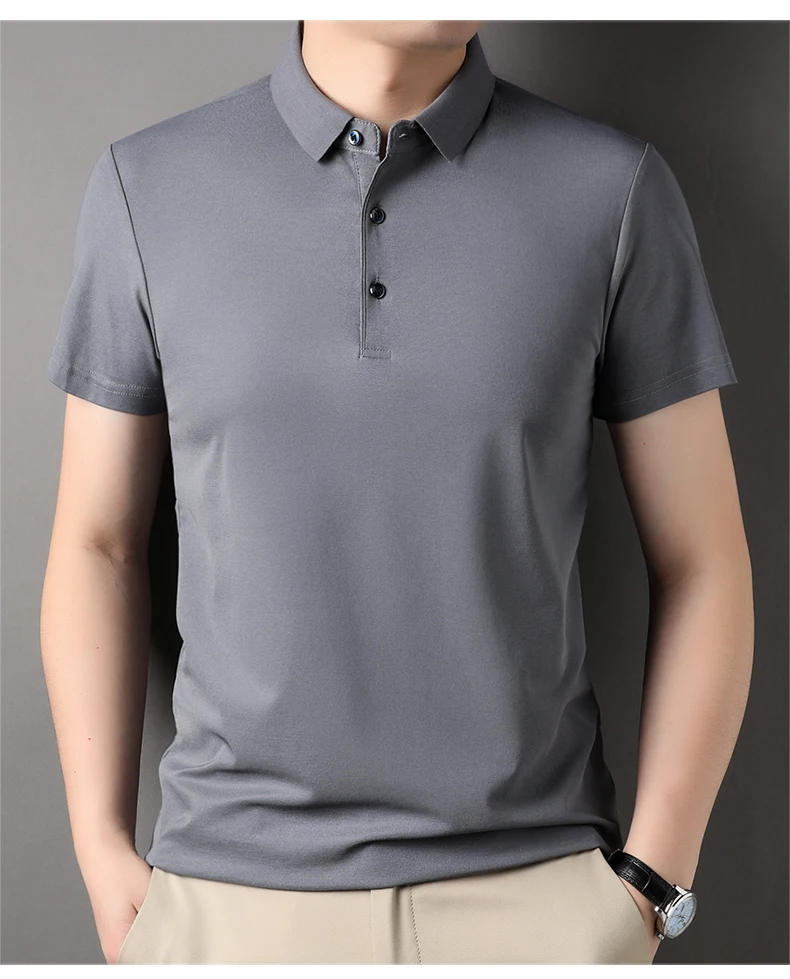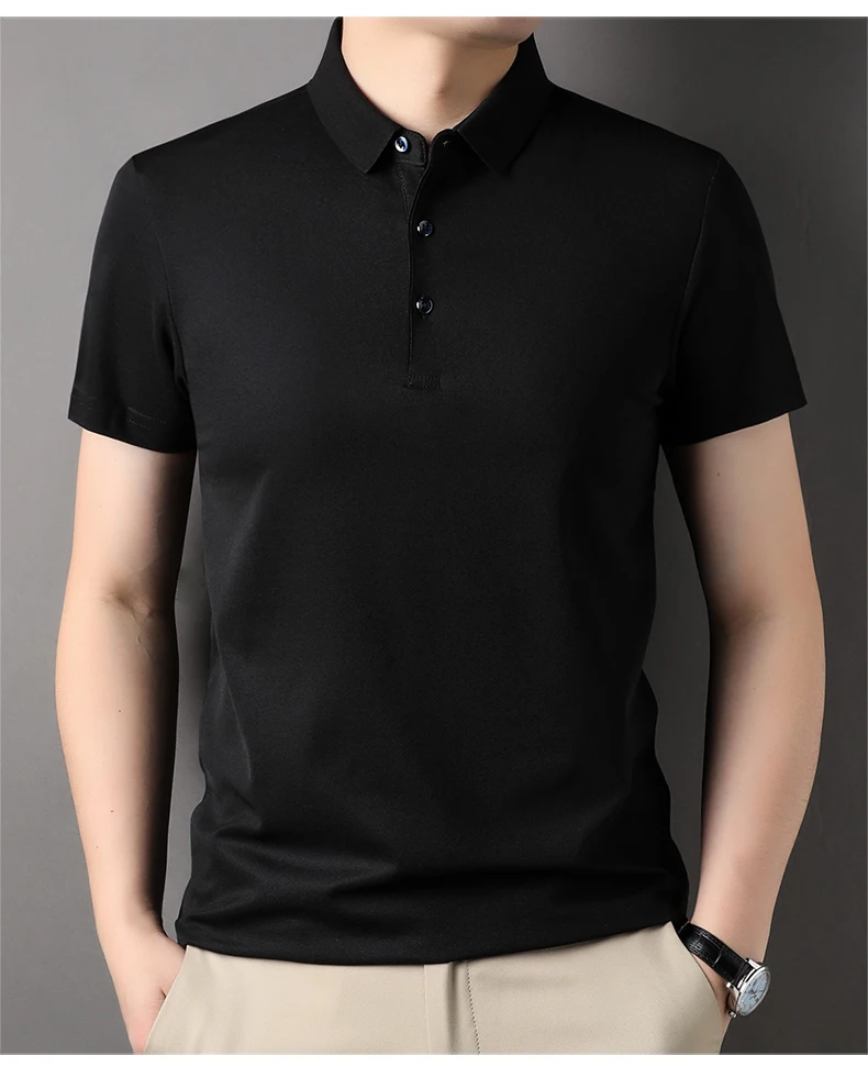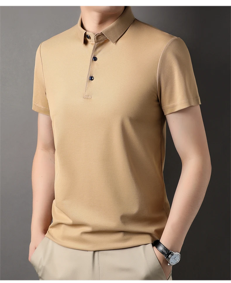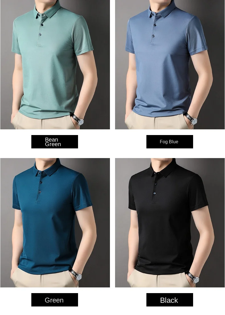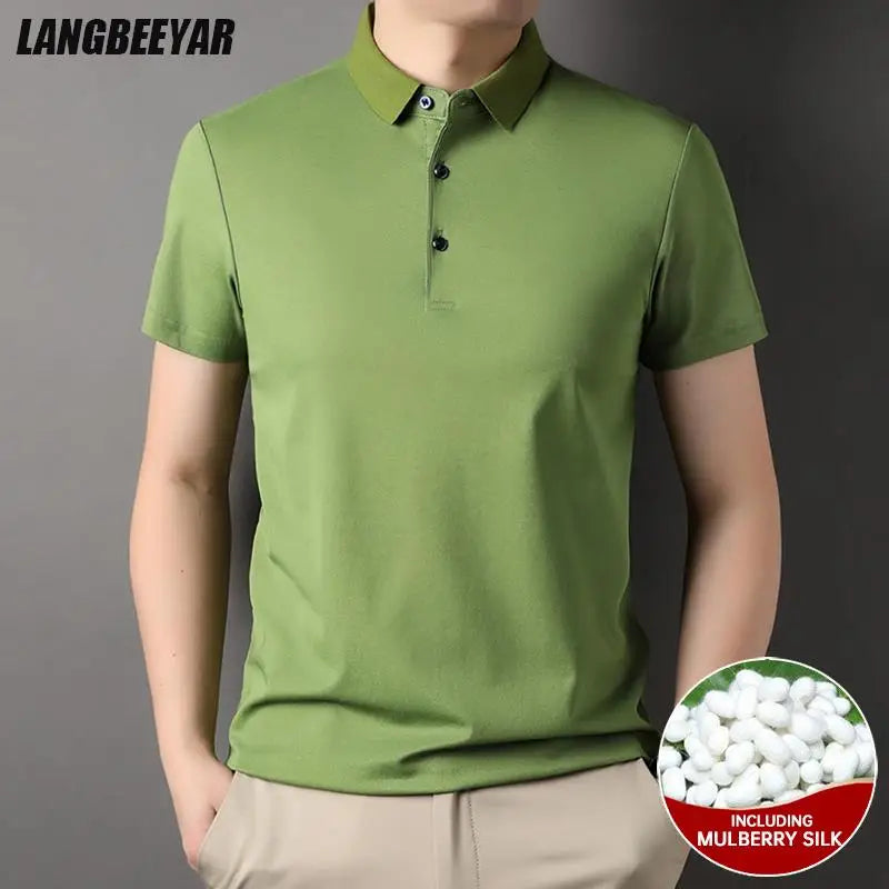 Premium Men's Polo Shirt – Luxury Summer Short Sleeve Casual Top Made with 4.7% Mulberry Silk – Plain Design, Elegant and Stylish