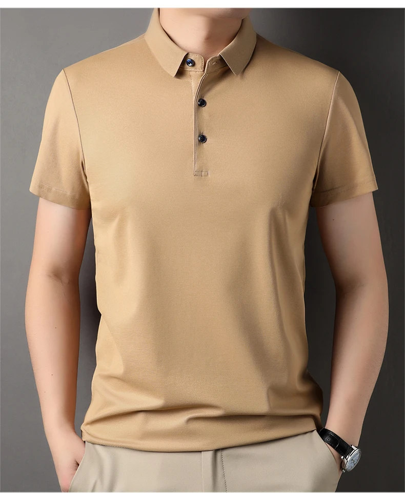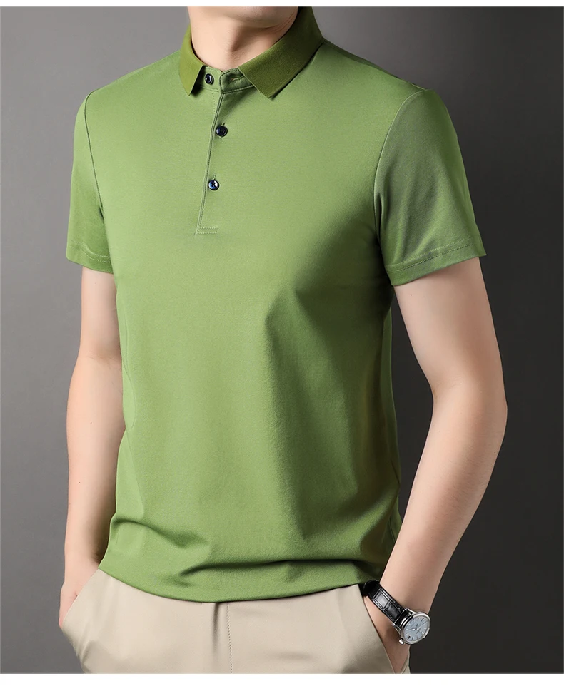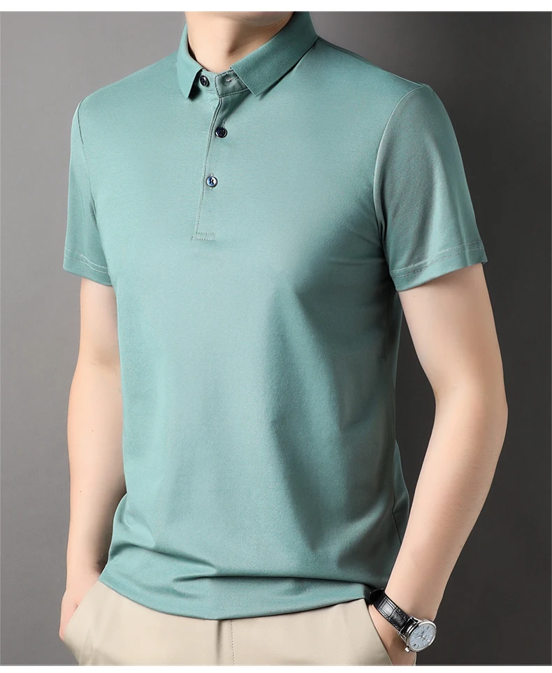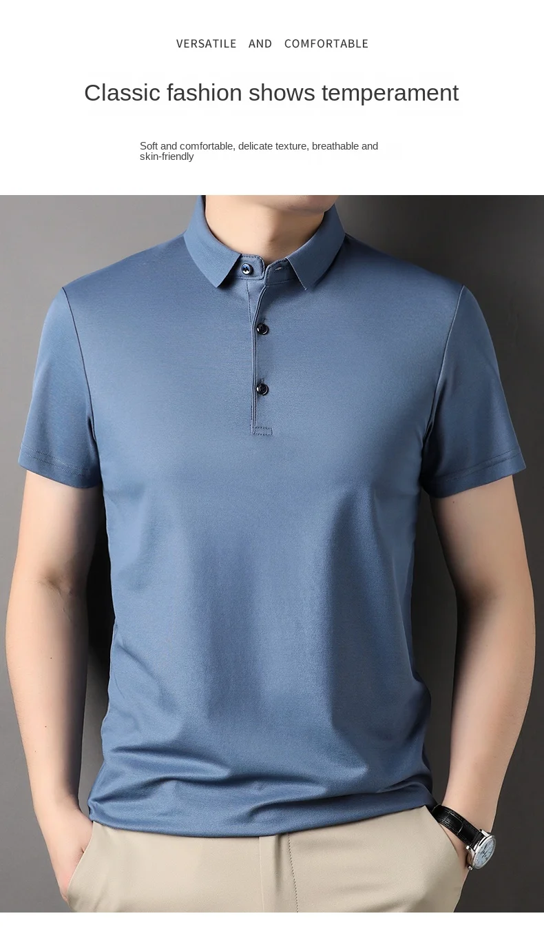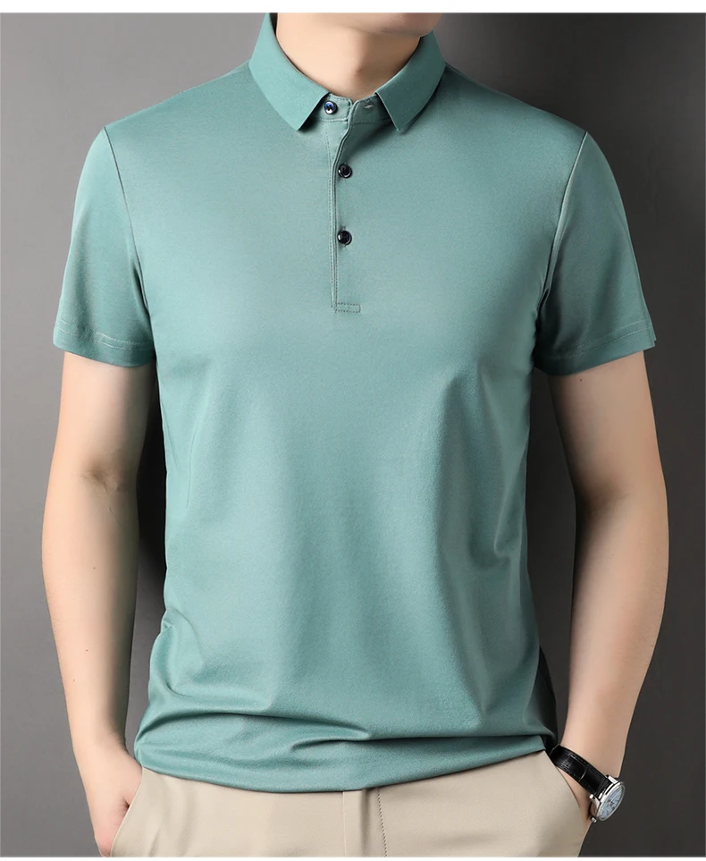 Premium Men's Polo Shirt – Luxury Summer Short Sleeve Casual Top Made with 4.7% Mulberry Silk – Plain Design, Elegant and Stylish