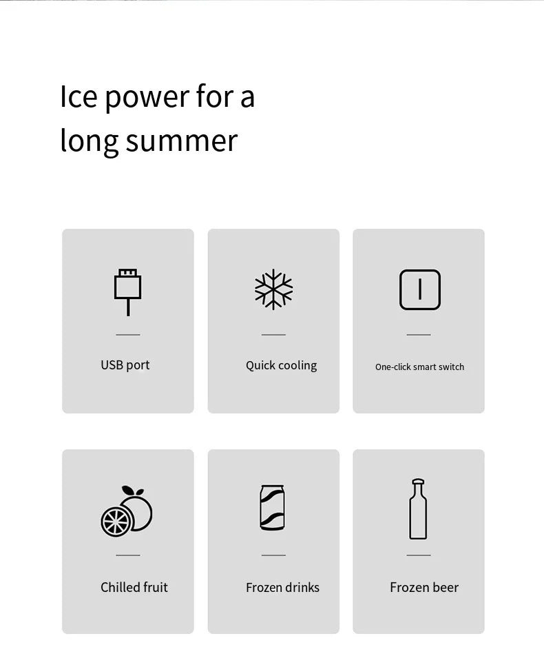 It features two cooling modes—sinking and inverted—to suit different container types. The universal USB interface allows you to power it via power banks, laptops, or car chargers.