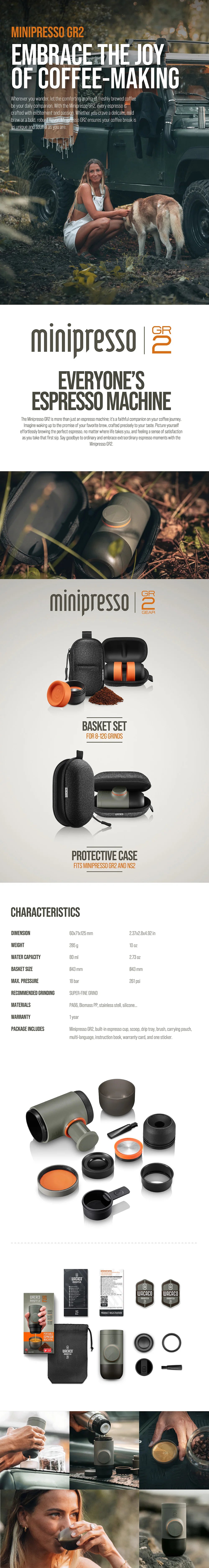 WACACO Minipresso GR2 Portable Espresso Maker – Outdoor Travel Coffee Machine Compatible with Ground Coffee – Ideal for Camping & Gifts