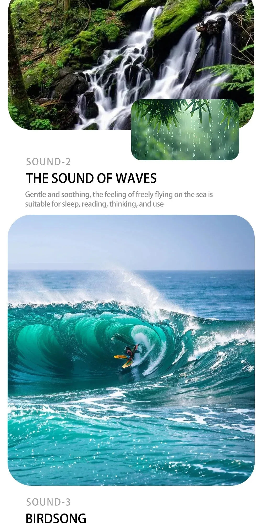 Ideal for bedrooms, nurseries, or workspaces, this sleep aid combines light and sound to enhance your relaxation experience.