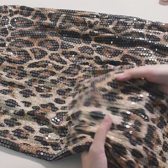 - Decorated with sequins over a leopard print base, these shorts combine glam and wild elements for a fierce look.