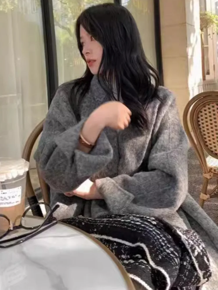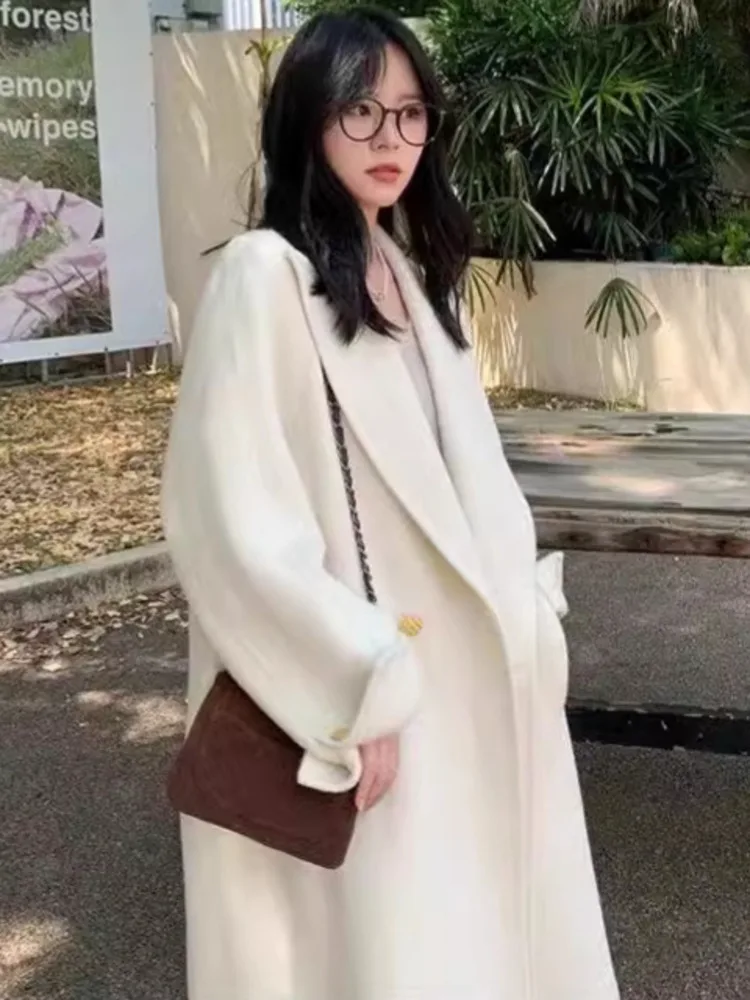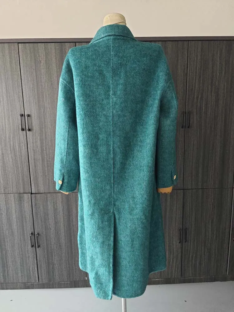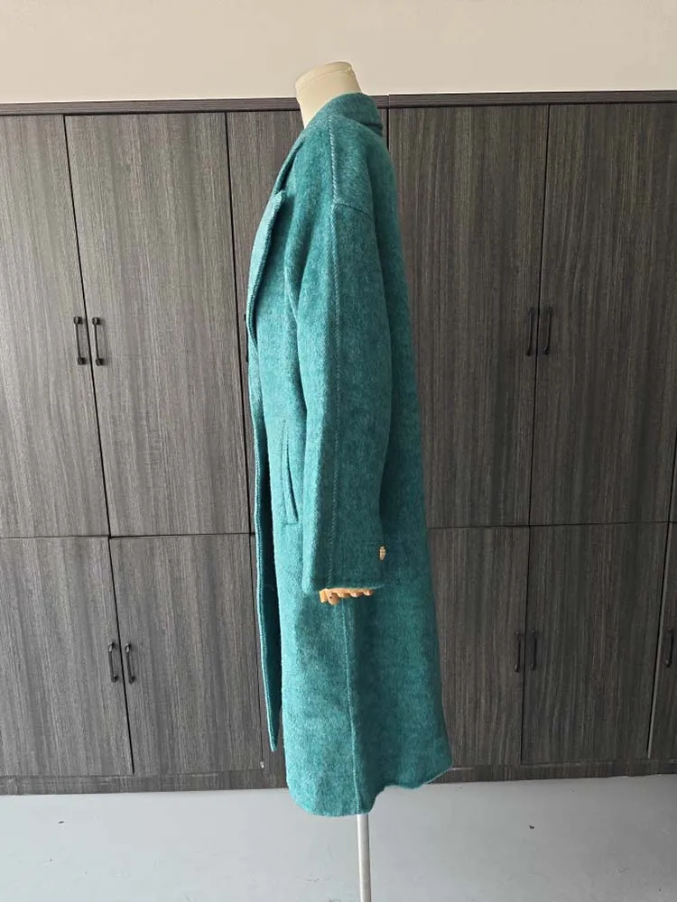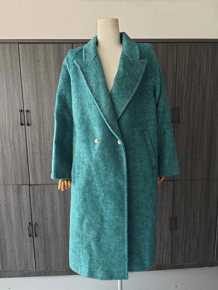 ZMEENNA Elegant Blue Wool Blend Long Winter Coat for Women – Double-Breasted Lapel Overcoat with Loose Fit and Warm Design (Model ZM3425)